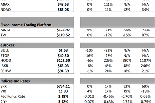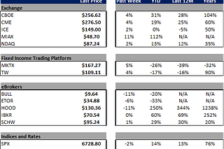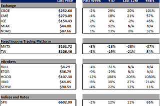My thoughts on publicly traded diversified financial companies including exchanges, online brokers, and fixed income trading companies.