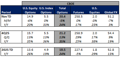 Source: Company Daily Volume Releases, Cboe Global Markets and OCC